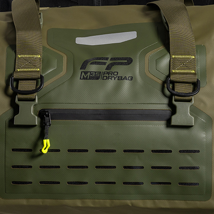 Bolsillo frontal con cierre a prueba de agua y sistema MOLLE exterior