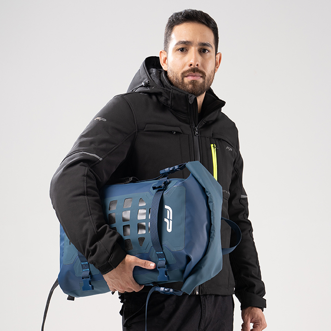 Gracias a sus correas ajustables, puedes llevarlo como morral o fijarlo firmemente a tu moto. Su tono azul le da un toque distintivo y aventurero, reflejando el espíritu libre de quienes viajan sin miedo al camino.