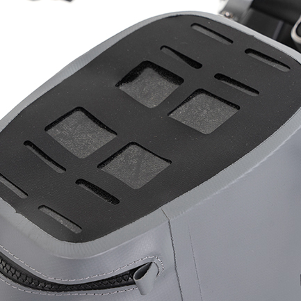 Fabricado con material impermeable, protege el contenido frente a la lluvia y la humedad. Integra sistema MOLLE para ampliar su funcionalidad, un bolsillo interno para celular y elásticos de sujeción que evitan el movimiento del contenido durante la conducción.