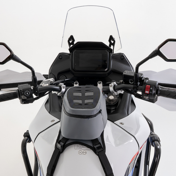 La base del tankbag está elaborada con textil suave, reduciendo la fricción y ayudando a proteger los acabados del tanque. Su instalación es rápida y sencilla gracias a las correas universales, sin necesidad de herrajes ni adaptaciones complejas. El color gris aporta un estilo técnico y moderno, ideal para configuraciones de equipaje versátiles.