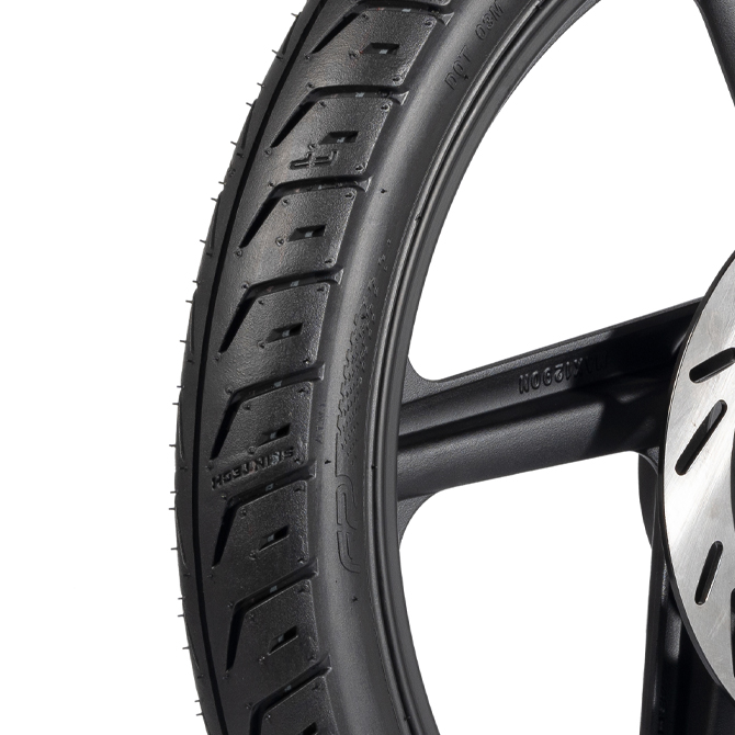Su labrado direccional garantiza agarre seguro en todo tipo de pavimento, incluso bajo lluvia.