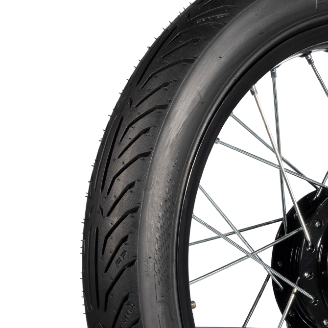 El caucho de alta calidad asegura una excelente adherencia en frenadas y curvas, mientras su estructura reforzada ofrece estabilidad a velocidad.