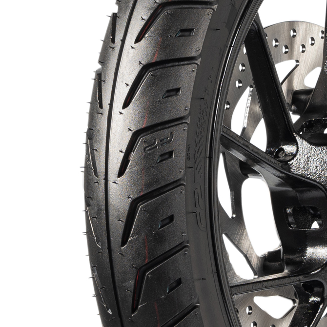 Diseñada para ofrecer tracción confiable en pavimento seco o mojado, la FP Asphalt 100/80-17 TL incorpora un labrado direccional que optimiza el drenaje del agua y mejora la estabilidad en curvas.