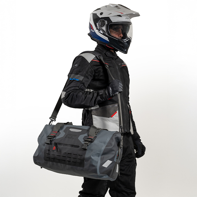 La Maleta Dry Bag M45 C3 Gris es la elección perfecta para los moto viajeros que necesitan más espacio sin renunciar a la protección. Fabricada con materiales de alta durabilidad y costuras termoselladas, proporciona una barrera total contra el agua, el polvo y el lodo, incluso en condiciones extremas.