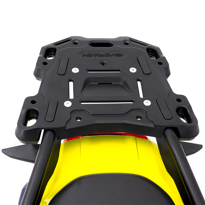 Parrilla EvoRack FP para Suzuki VSTROM 160: acero y base plástica resistentes que te permiten instalar maleteros o Dry Bags sin modificar tu moto. Más espacio, más estilo, más libertad.