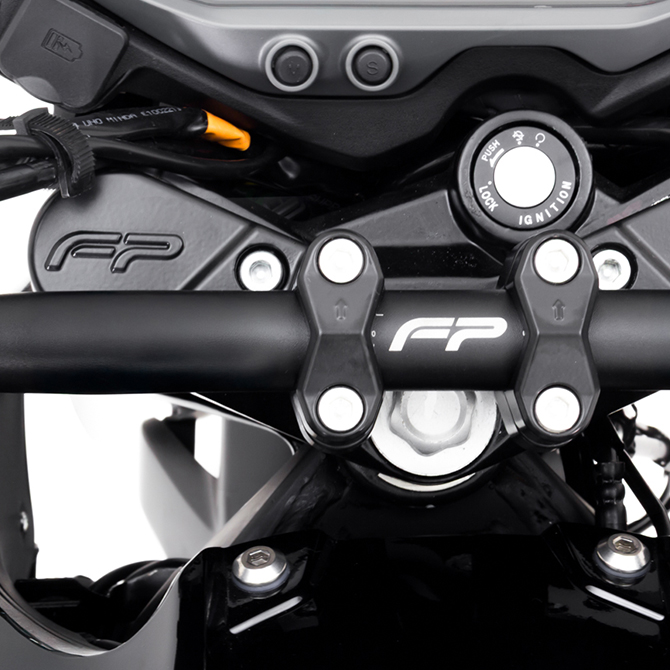 Nuesrta base de manubrio ofrece una postura de manejo más ergonómica, mayor estabilidad y un diseño premium 100% compatible con manubrios Fatbar FP. ¡Instálala fácilmente y siente la diferencia desde el primer recorrido!