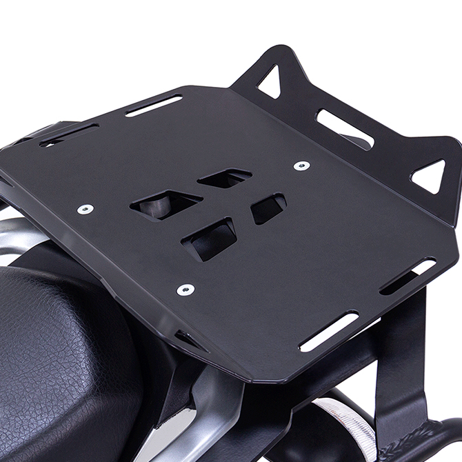 Fabricada en aluminio de alta calidad, con un peso aproximado de 1 kg, combina ligereza y resistencia estructural, ofreciendo una plataforma sólida sin añadir carga innecesaria a la motocicleta. Su recubrimiento con pintura electrostática protege contra la corrosión y el desgaste producido por el clima y el uso constante.