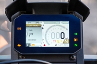 El tablero TFT de 5 pulgadas es fácil de manipular con controles en el grip izquierdo, y una pequeña visera ayuda a garantizar que sea fácil de ver sin importar el ángulo. Esto hace que sea muy fácil cambiar los modos de conducción, el control de tracción y las configuraciones de ABS sobre la marcha y el estado de cualquier configuración se confirma fácilmente visualmente en el tablero.