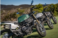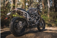 El equipamiento de fabrica es muy completo e incluye manillar ancho regulable, chasis multitubular de acero, basculante de doble brazo, llantas de aleación delantera de 17 y trasera de 17 también con Pirelli MT60, horquilla invertida Marzocchi de 50 mm no regulable, monoamortiguador trasero regulable en precarga y extensión, mordazas de freno delanteras y traseras Brembo. Para la versión trail los cambios son rines de radios cruzados (19” adelante) sellomatic con Pirelli Scorpion Rally STR y cambios en el sistema de escape para hacerlo más alto con un estilo más offroad.