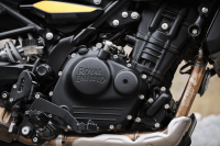 De 450cc, el motor de la nueva Himalayan 450 está un poco inclinado hacia adelante con el fin de reducir altura y bajar la posición del cigüeñal. Su culata es de dos levas y cuatro válvulas con una relación de compresión de 11,5:1 y 452cc con unas cotas cuadradas de 84,0x81,5 mm para lograr una buena respuesta. Cuenta con una IMU de seis ejes que controla los modos de conducción y la tracción.