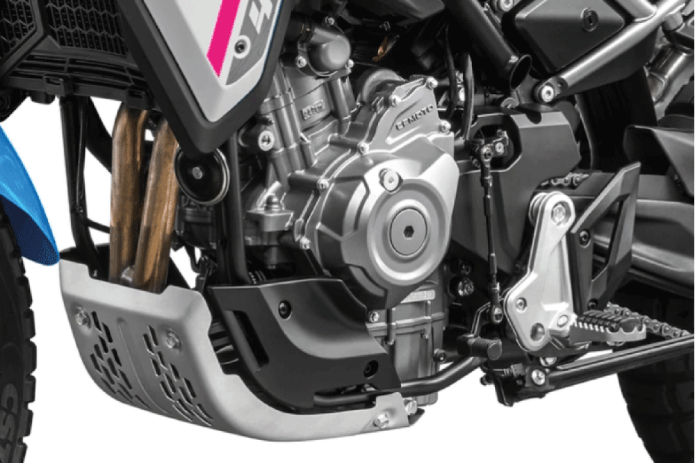 Con un motor bicilíndrico en paralelo de tamaño medio y una cilindrada de 449 cc complementada con un cigüeñal de 270° y ejes de equilibrio dobles, la nueva CFMOTO 450 MT combina a la perfección el árbol de levas y el sistema de admisión/escape.