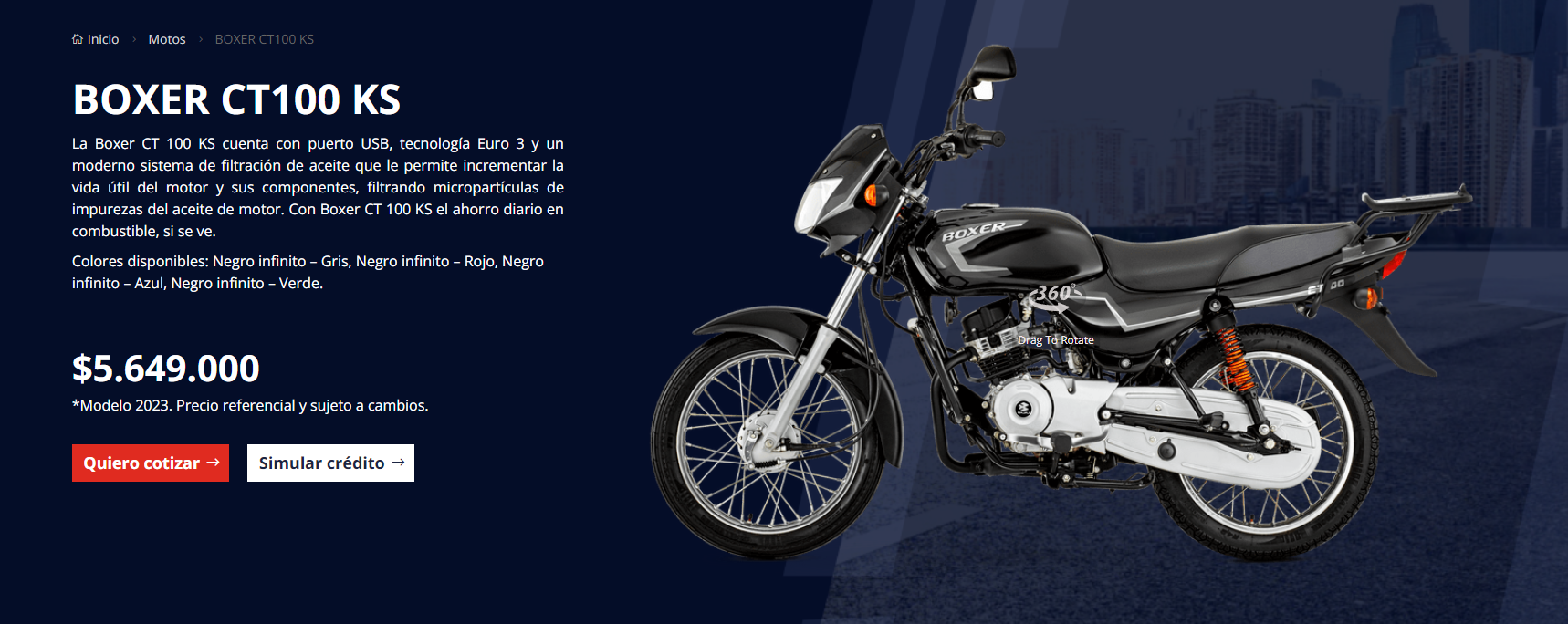 - Bajaj Boxer CT 100: Se encuentra entre las más económicas, junto a la AKT 125, ya que su precio ronda los 5.5 millones de pesos. Se caracteriza por su ahorro de combustible ya que puede recorrer hasta 370 kilómetros con un sólo galón de gasolina. Esta Bajaj vendió 25.101 motos en el 2022.