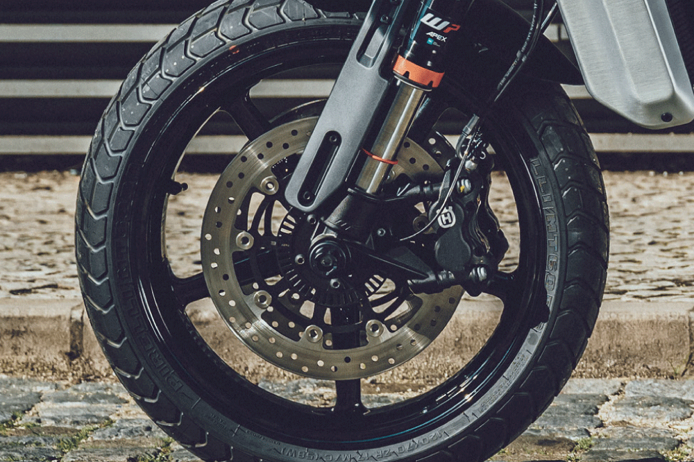 Para las llantas y neumáticos, la Svartpilen 801 tiene llantas de fundición de aluminio de 17” con el logotipo de Huqsvarna que le dan una visualización de primer nivel. Con unas llantas robustas y estables, esta nueva motocicleta viene con neumáticos Pirelli MT60 RS, los cuales destacan por un agarre y durabilidad indiscutibles.