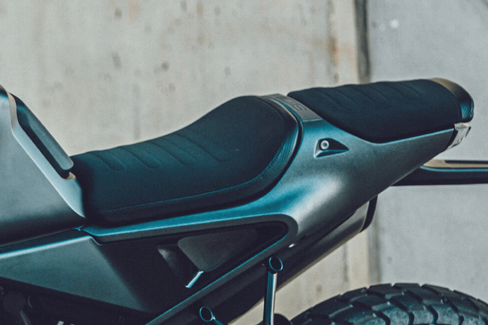 El asiento característico de la marca Huqsvarna es inconfundible. Para nueva versión de la Svartpilen 801, el asiento se estrecha en la parte delantera, lo que facilita el acceso y los movimientos. El sillín cómodo, acolchado y con costuras termo estampadas para mejorar el agarre durante la lluvia.