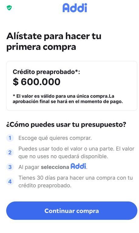 *Recuerda que la aprobación del crédito está sujeto a validación por parte de las políticas de Addi*