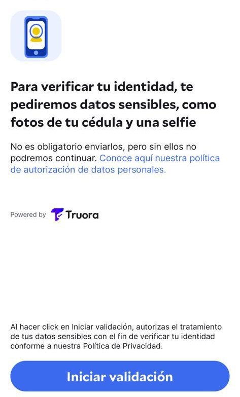 El paso final será tomarte una foto tipo selfie con tu cédula por ambos lados para validar tu identidad