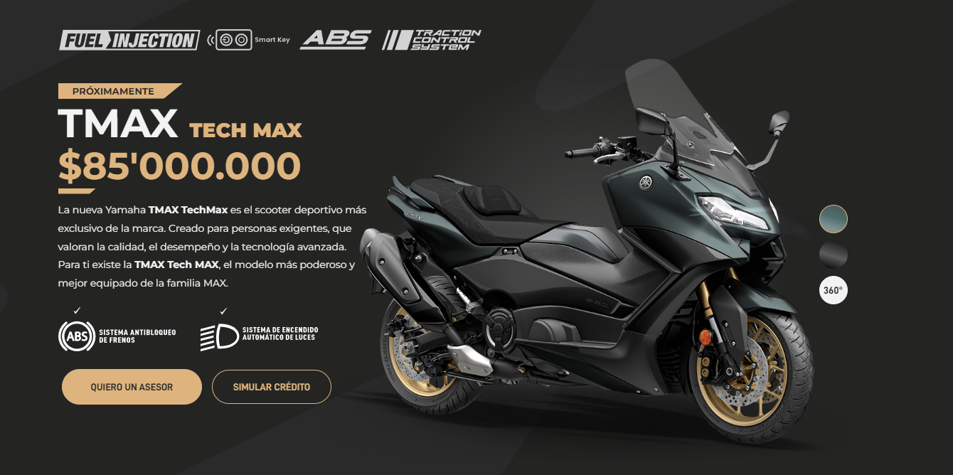La Yamaha Tmax llegará a Colombia en una única versión llamada Tech Max o Tech Tmax que tiene algunas variaciones en equipación y tecnología.