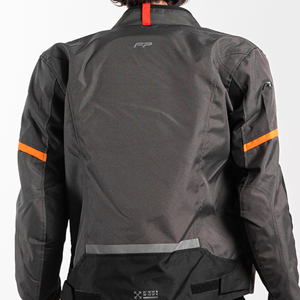 Su malla interior ligera y confortable mejora la frescura, mientras que los ajustes en mangas, brazos y cintura permiten un ajuste ergonómico y cómodo. El contraste entre gris y naranja le da un estilo urbano vibrante, reforzado por los detalles reflectivos FP y la franja roja premium en la parte trasera del cuello, distintivo de la marca.