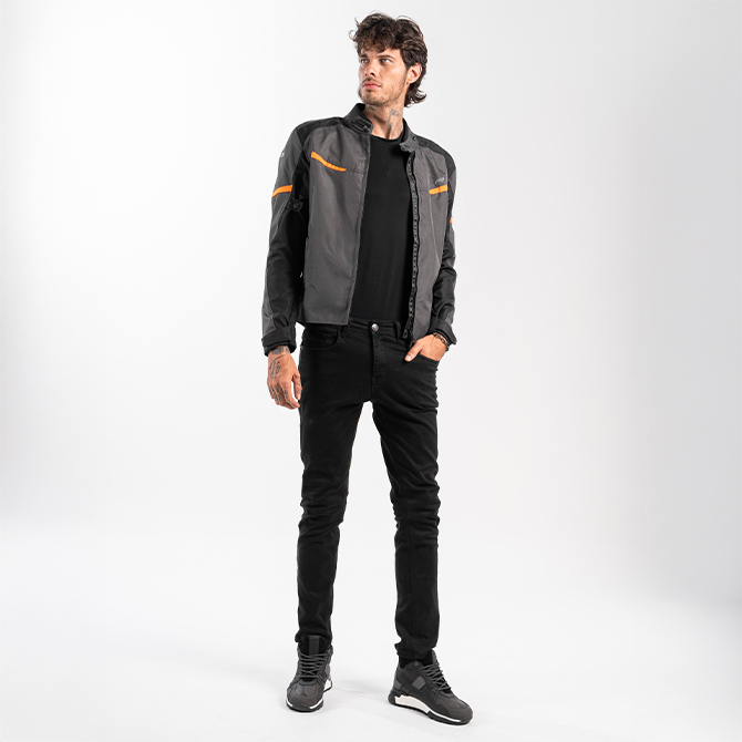 La FP K1 Gris/Naranja es perfecta para motociclistas que quieren destacar con un look moderno sin renunciar a la seguridad. Fabricada en poliéster 600D, resistente a la abrasión, y equipada con protecciones CE en hombros y codos, brinda confianza y protección certificada en cada trayecto.