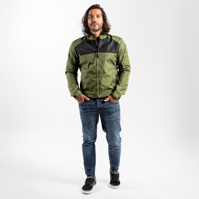 Con su poliéster 600D resistente y protecciones CE certificadas en hombros y codos, tendrás la seguridad necesaria para moverte con confianza. Su color Desert aporta un toque moderno y relajado, ideal para quienes disfrutan de un look ligero y diferente.