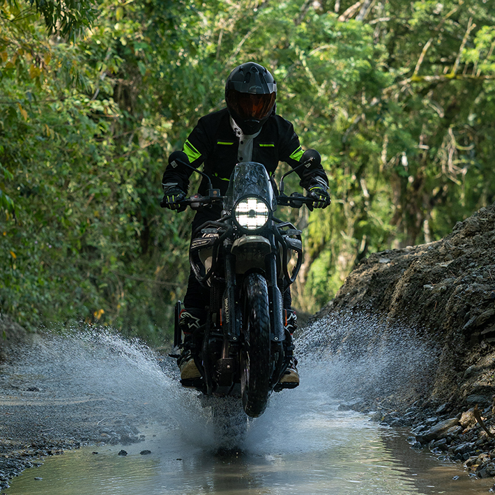 Con poliéster nylon 500D resistente y protecciones CE Nivel 1 en hombros y codos, más foam en la espalda, combina ligereza con seguridad certificada. Sus ajustes en cintura y mangas mejoran el fit, y el interior en malla ligera suma confort en rutas prolongadas.