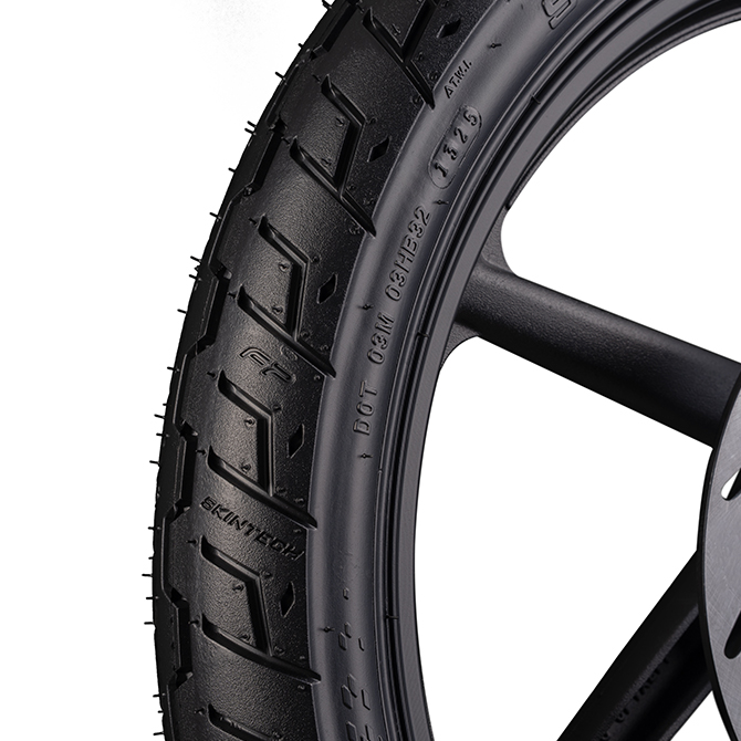 Su labrado compacto mejora la adherencia en pavimento, garantizando estabilidad en frenadas y giros cerrados.