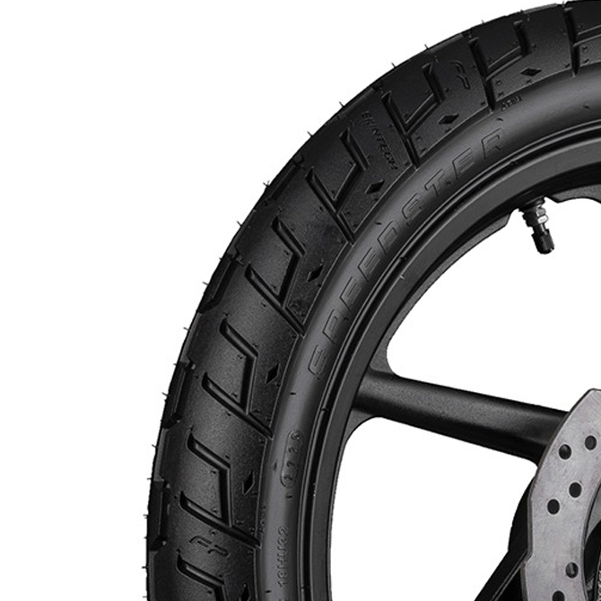La FP Speedster 90/90-17 TL combina un diseño moderno con tecnología de compuesto adherente que garantiza tracción óptima en curvas y frenadas.
