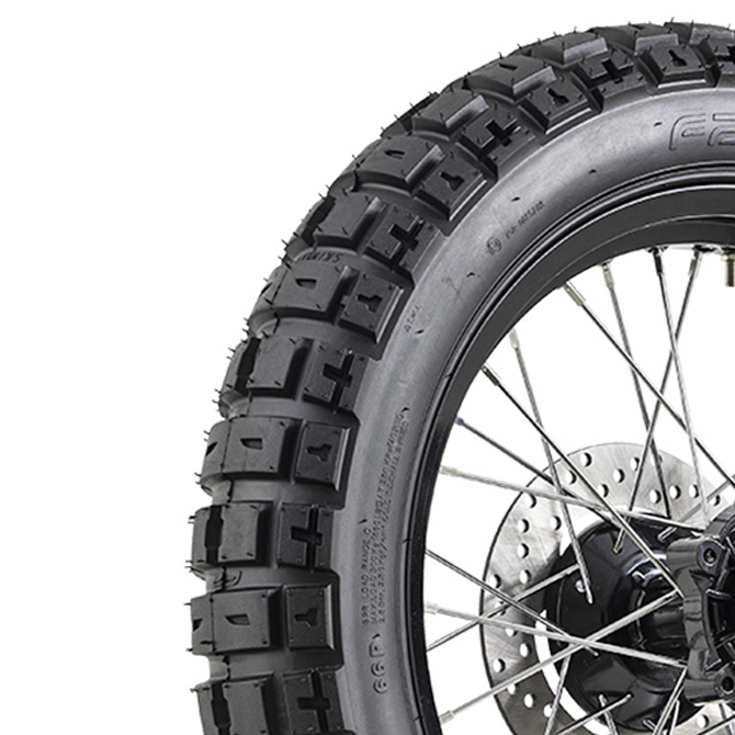 Fabricada para soportar condiciones extremas, la FP Traxx 120/80-18 TL brinda el equilibrio perfecto entre flexibilidad y dureza.